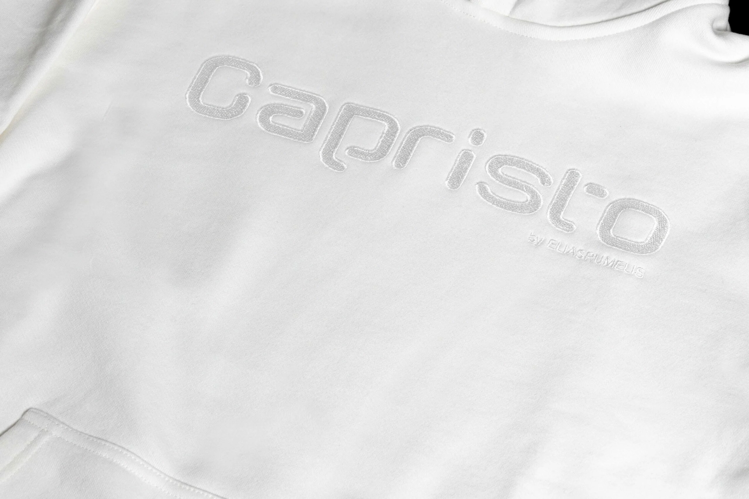 La sudadera con capucha en blanco de Capristo finalmente está aquí. Haz una declaración con el impresionante logo de Capristo en el pecho.