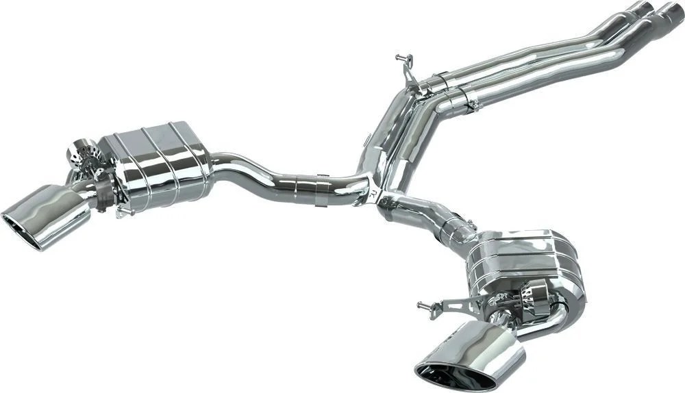 02 AU 005 03 013- Audi RS4 (B9) / RS5 Coupe : escape con válvulas de vacío con tubos centrales recambio del silenciador central y colas ovales pulidas (CES3) con Homologación ECE