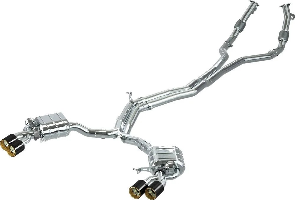 02 AU 005 03 013- Audi RS4 B9 & F5 / RS5 Coupe / Sportback : escape con válvulas de vacío con tubos centrales recambio del silenciador central y colas fibra de carbono o aluminio wicrom con interior anodizado oro, rojo, plata y negro ( con control remoto programable CES3 con mando a distancia) con Homologación ECE
